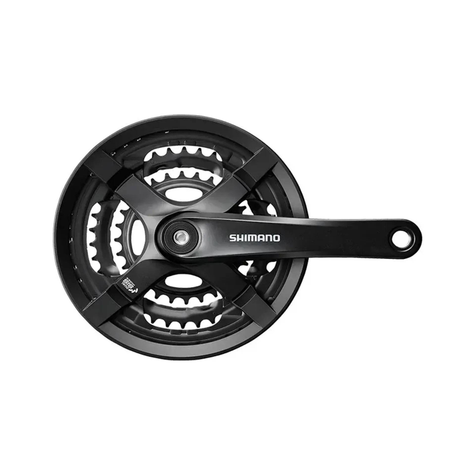 The SHIMANO TOURNEY TY crank delivers reliable, precise DUAL SIS shifting.