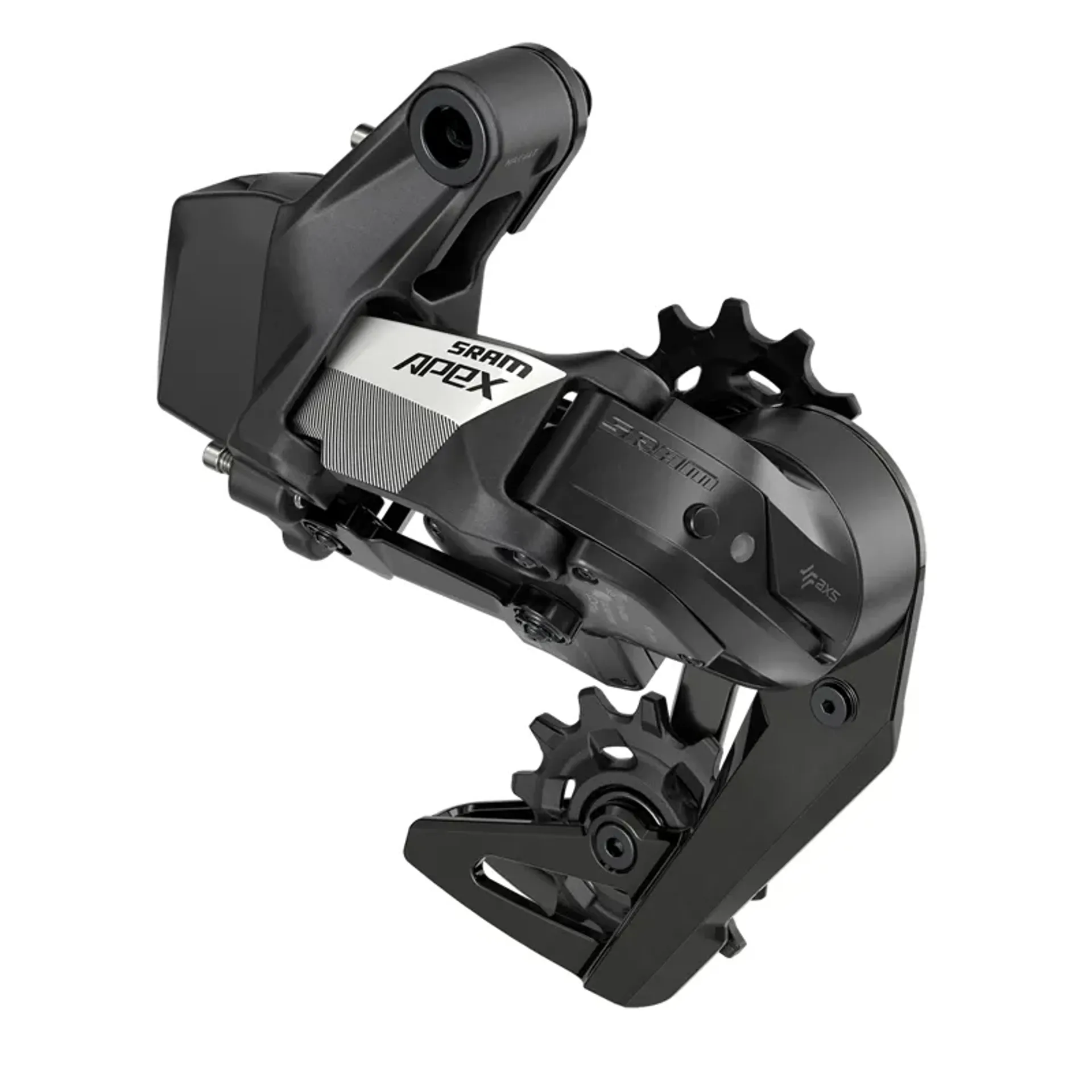 The Apex XPLR AXS rear derailleur fits wide-range cassettes with 36T or 44T large cogs and incorporates a spring clutch for flawless chain management on or off-road.